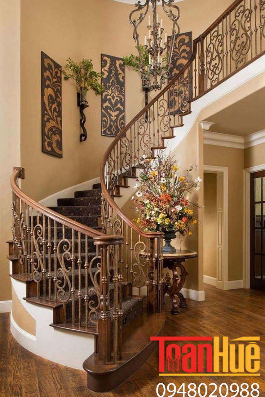 Cầu thang sắt nghệ thuật được thấy rất nhiều ở những ngôi nhà hiện đại, căn biệt thự sang trọng với phong cách châu Âu kết hợp nhuần nhuyễn giữa cổ điển và hiện đại. Nhiều phụ kiện được kết hợp kèm theo mẫu cầu thang này góp phần tạo nên vẻ đẹp hoàn mỹ hơn cho công trình.